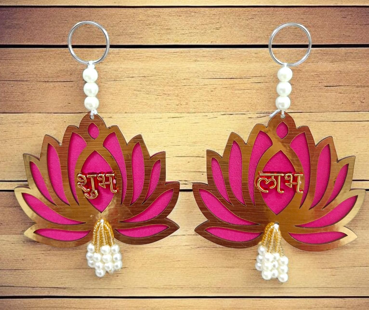 Invite prosperity and good fortune into your home with this Premium Quality MDF Hanging Subh Labh (Pair of 1). This essential festive decoration comes as a Pack of 2 (one pair), featuring the auspicious Sanskrit words "Shubh" (auspiciousness) and "Labh" (profit/gain). Crafted from high-quality Wooden (MDF) material, these hangings are designed for both beauty and durability.
